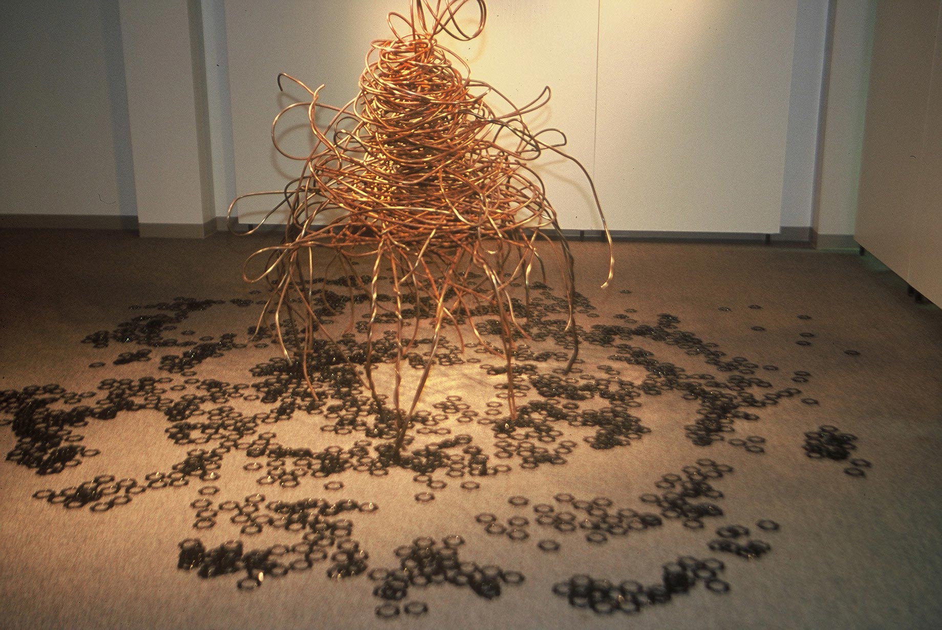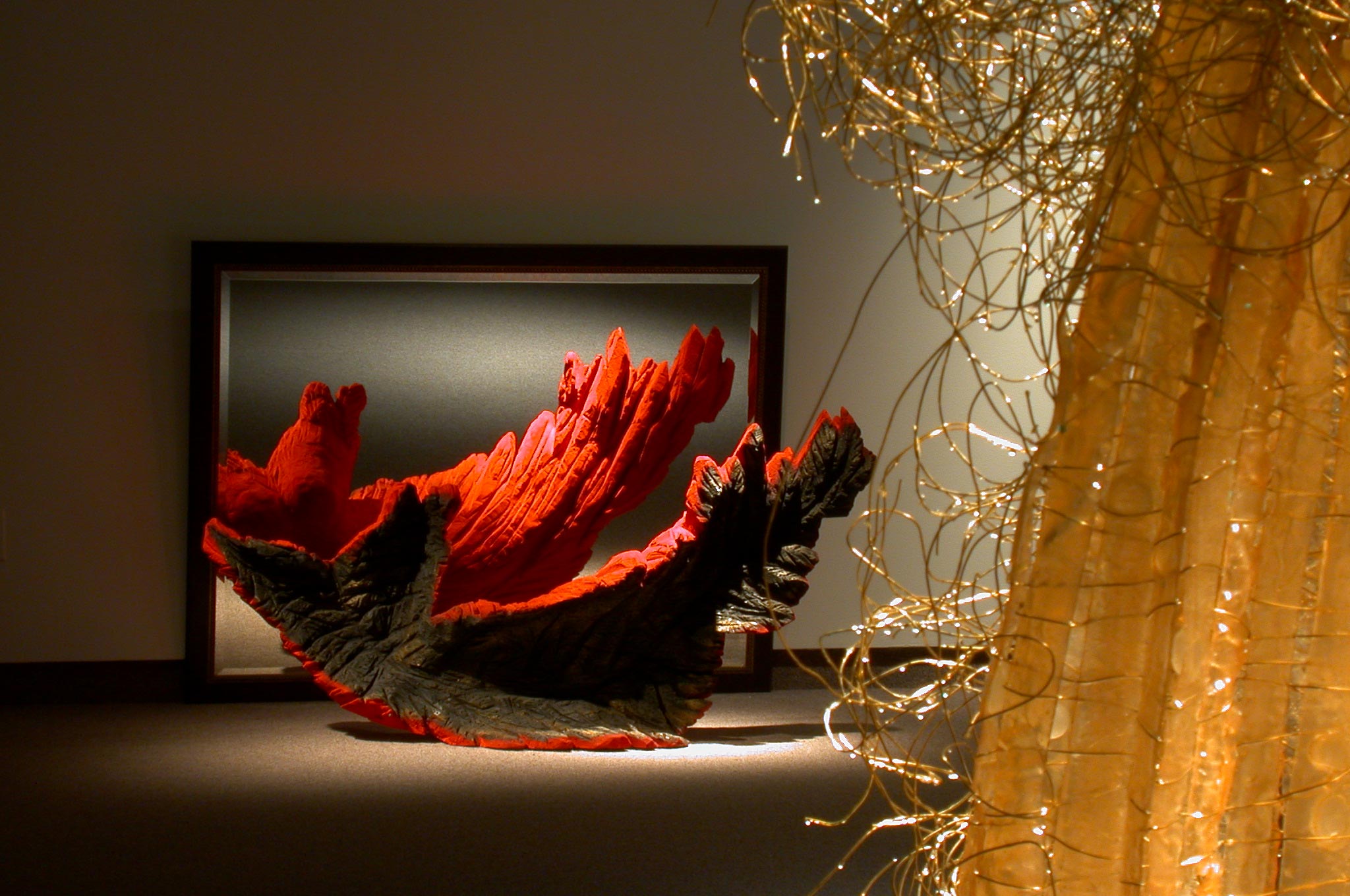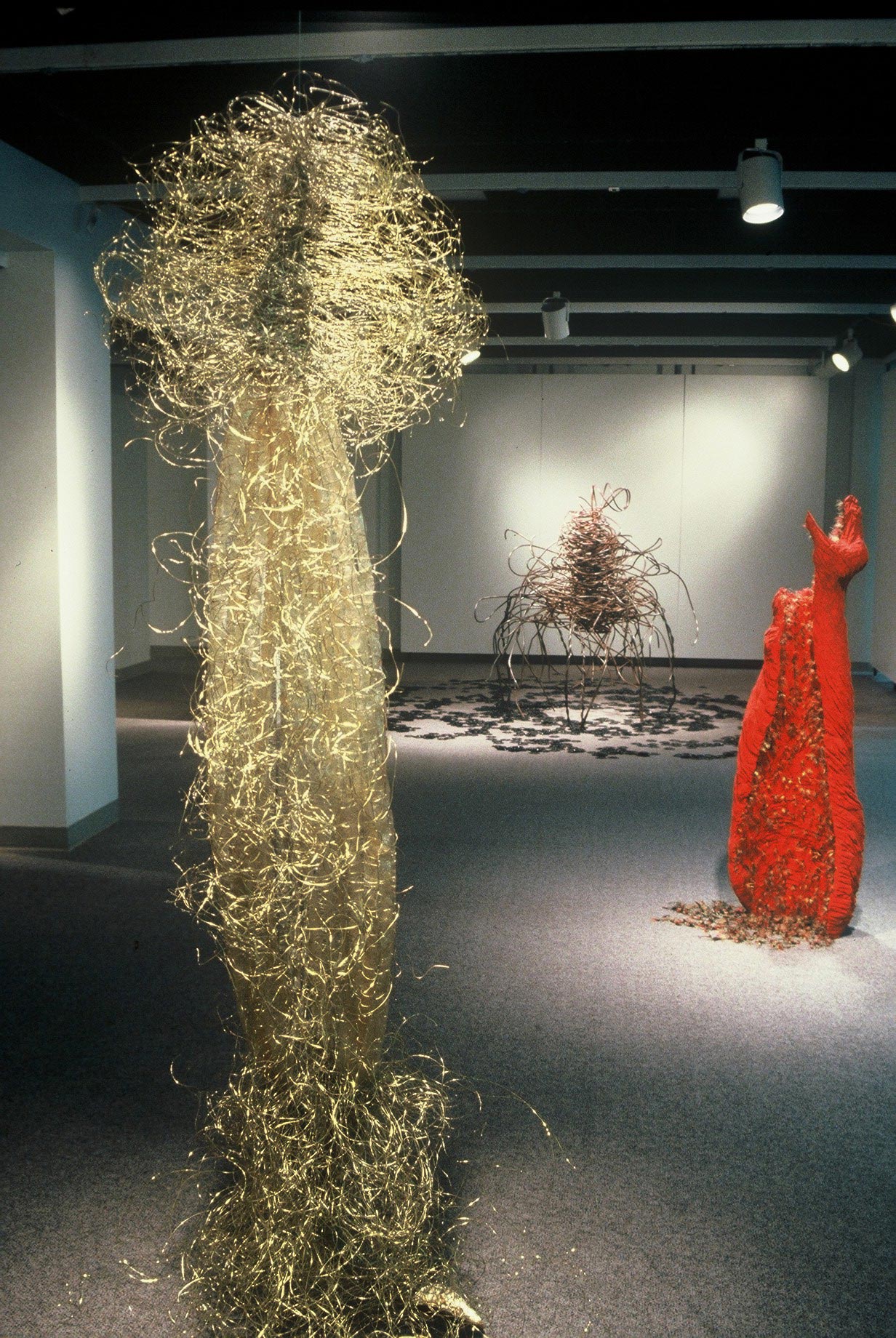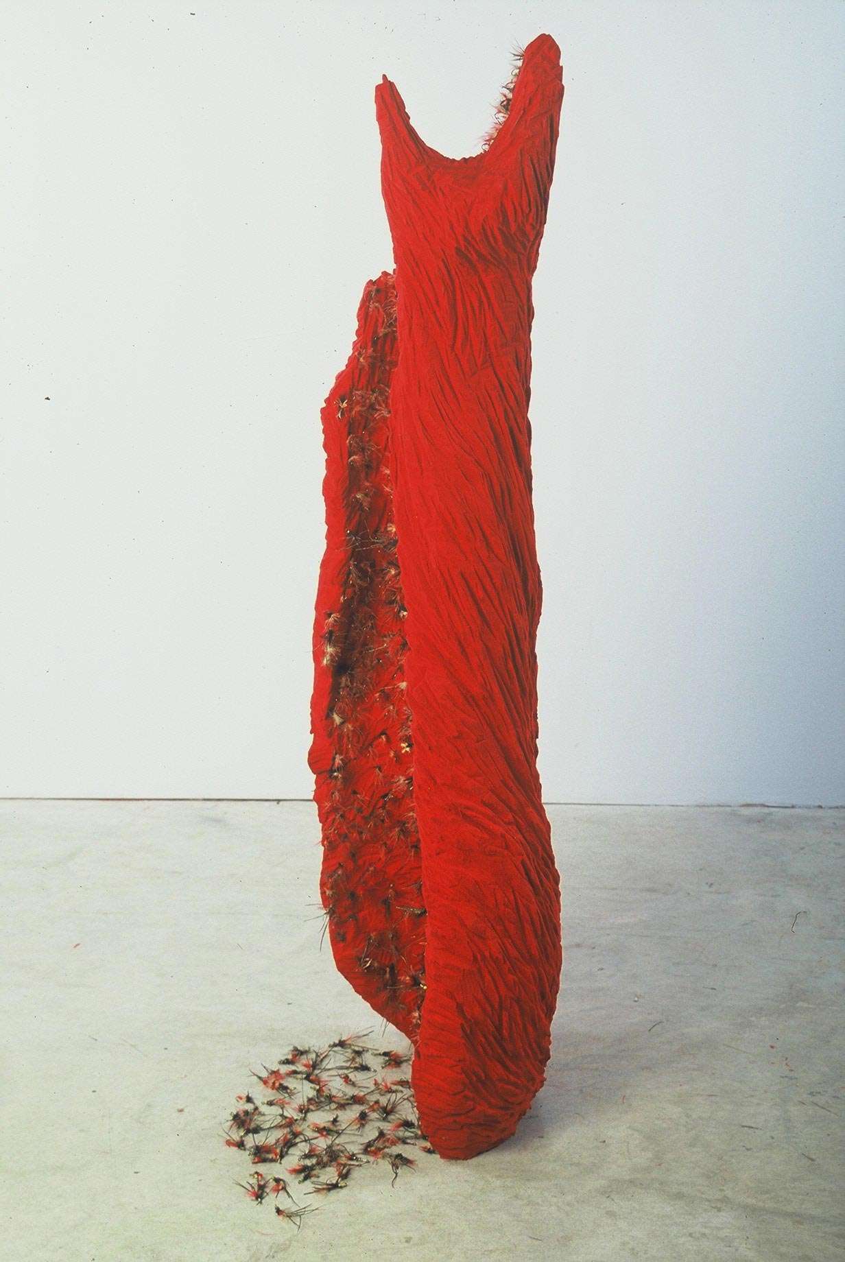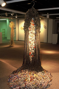 Les significations et les fonctions associées au vêtement sont multiples : cacher, séduire, révéler la personnalité de celui ou celle qui les porte, protéger du froid et des intempéries, afficher son statut social, etc. Dans ma démarche, la robe est tout cela, mais aussi et surtout une représentation de la complexité de lexpérience humaine, une métaphore du corps et de lâme. Mon travail, est caractérisé par le désir dinventorier, de travailler tous les aspects reliés au vêtement en relation avec le corps et/ ou lenvironnement, de lidentité à léconomique, du psychologique au social.