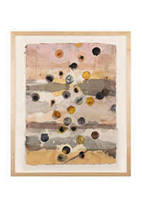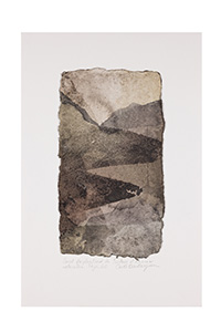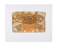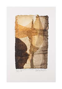 C’est avec la spontanéité de gestes simples: plier, nouer, tremper, immerger, faire danser les fluides sur la surface du papier, que je bâtis les compositions figurant sur les Pages du Carnet. La palette de couleurs que j’utilise provient de la banque des teintures et encres naturelles que j’ai fabriquées; les couleurs se déploient dans un esprit ludique sur la surface du papier artisanal que j’ai fabriqué, unique par sa géographie de reliefs et de textures. Les agencements des fluides colorés se déterminent au gré des associations, par juxtaposition, superposition et transparence, pour révéler des nuances étonnantes, tantôt vives, tantôt sobres, et à partir d’une diversité de points de vue surgit, qu’on peut percevoir comme paysage présenté en vues lointaine, frontale, macroscopique de ciel ou de sol.