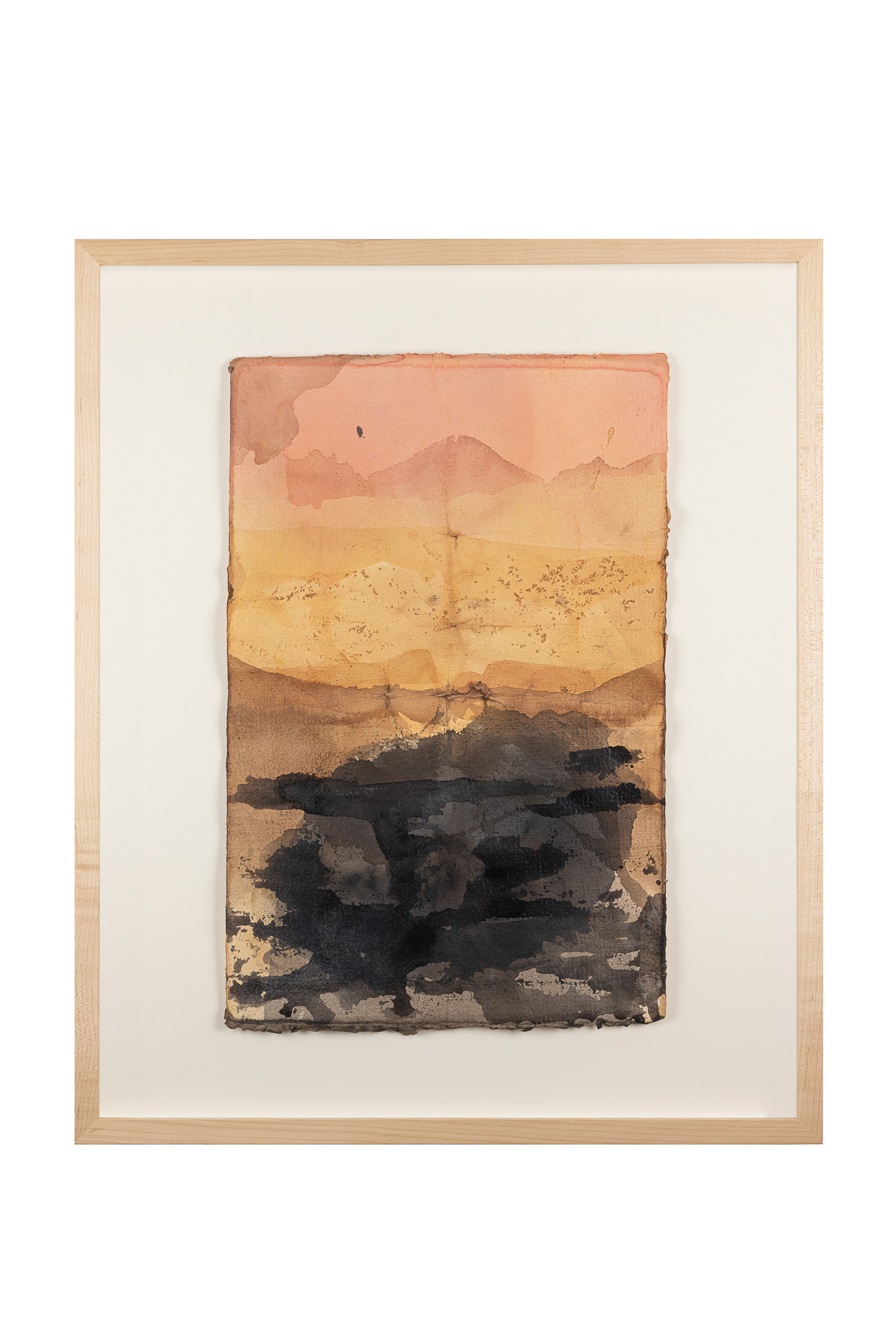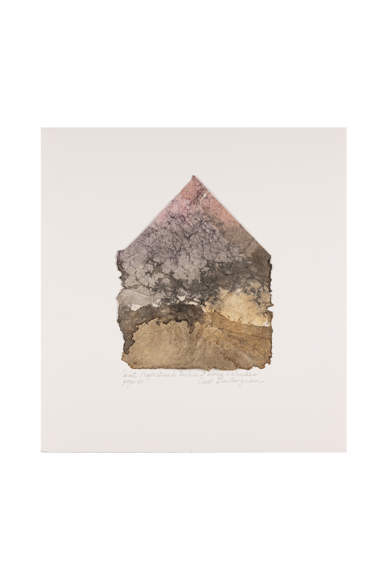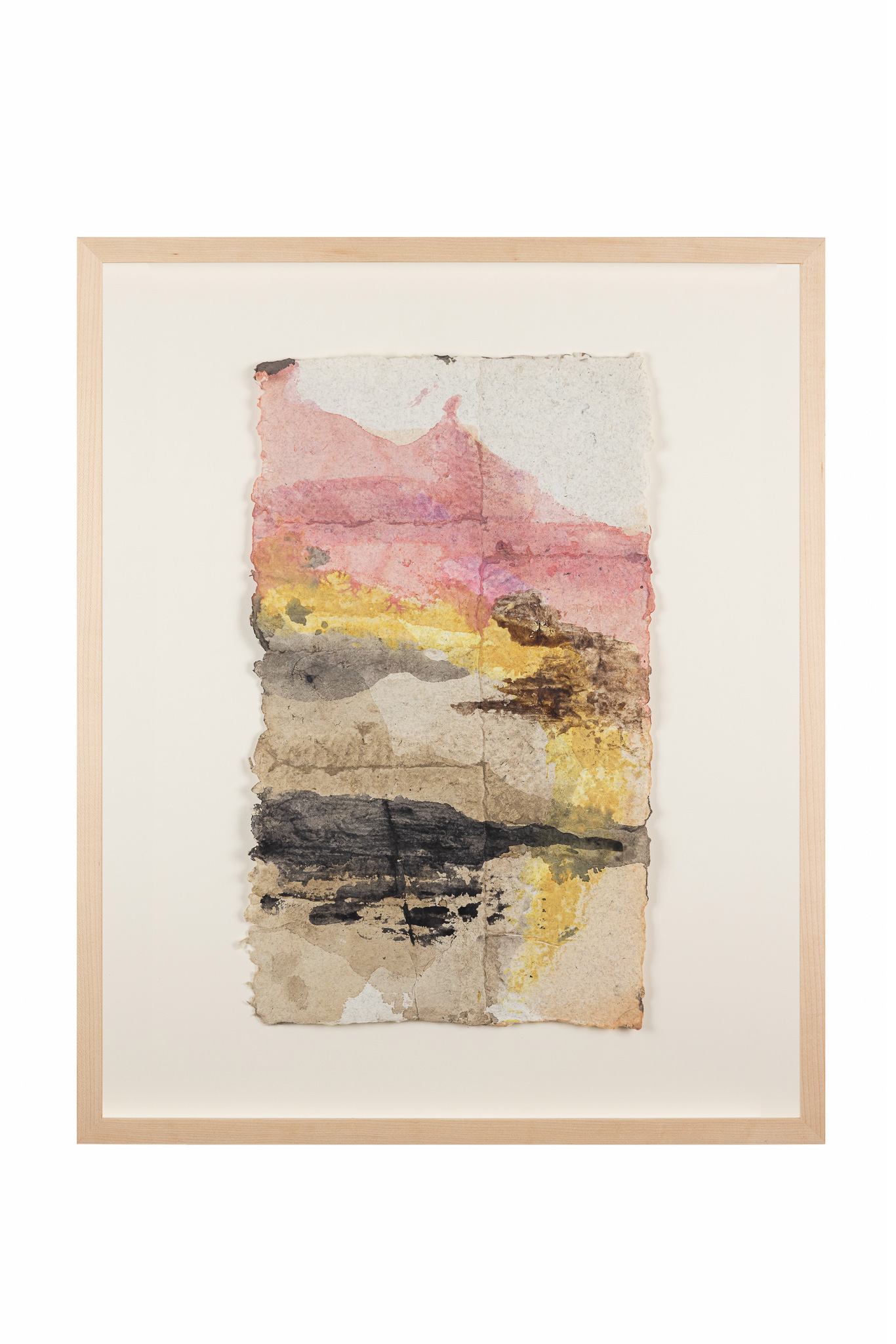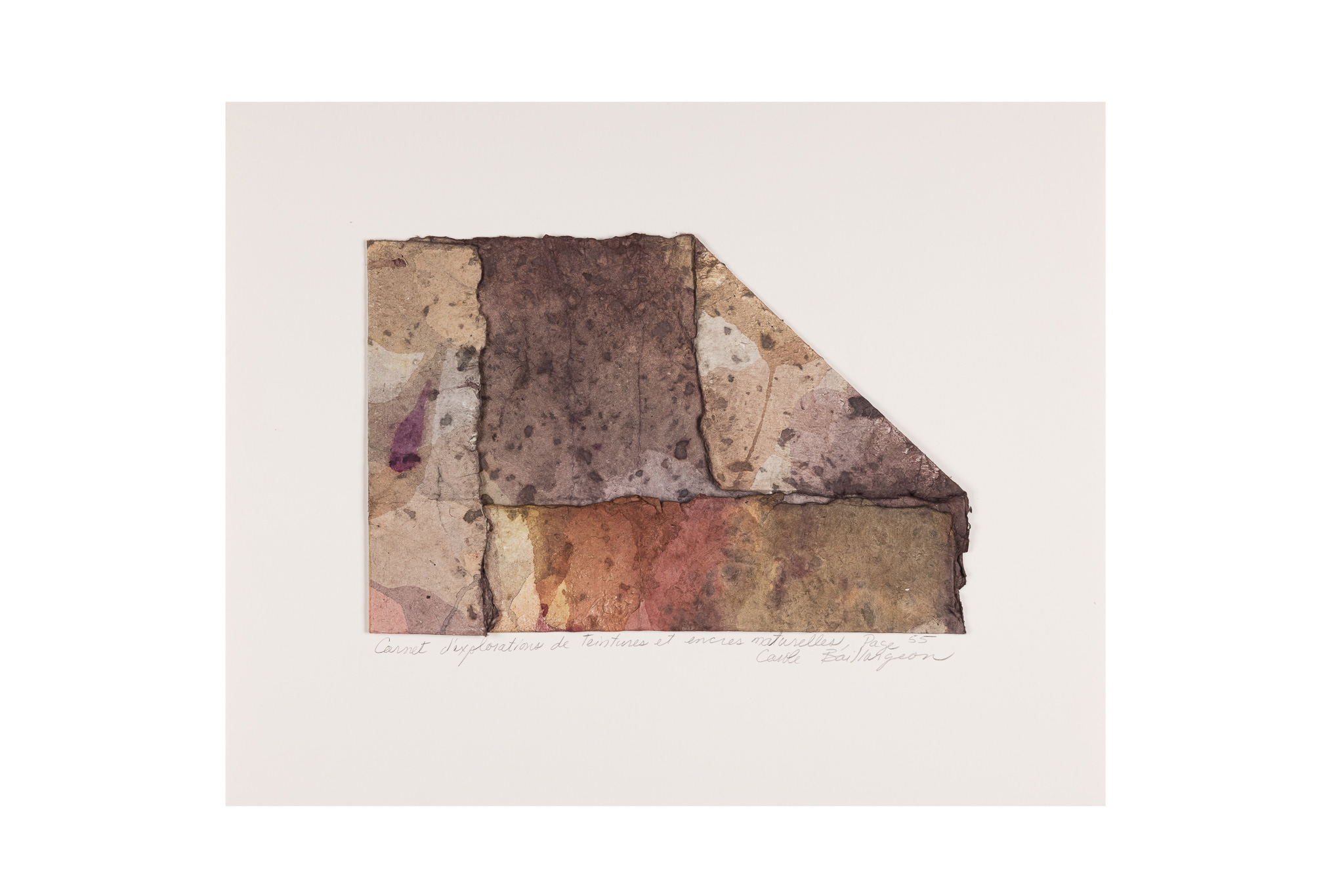 Mes créations utilisant les teintures et les encres naturelles en interaction avec le papier fait main sont un engagement que j’associe à la pensée philosophique néo-matérialiste qui met en valeur des savoirs traditionnels et prône un nouvel équilibre entre l’humain et la matière. Fabriquer mon papier, cueillir et convertir les plantes en matières tinctoriales me rapproche du paysage, du pays, de la relation que les humains ont longtemps eue avec le naturel vivant.