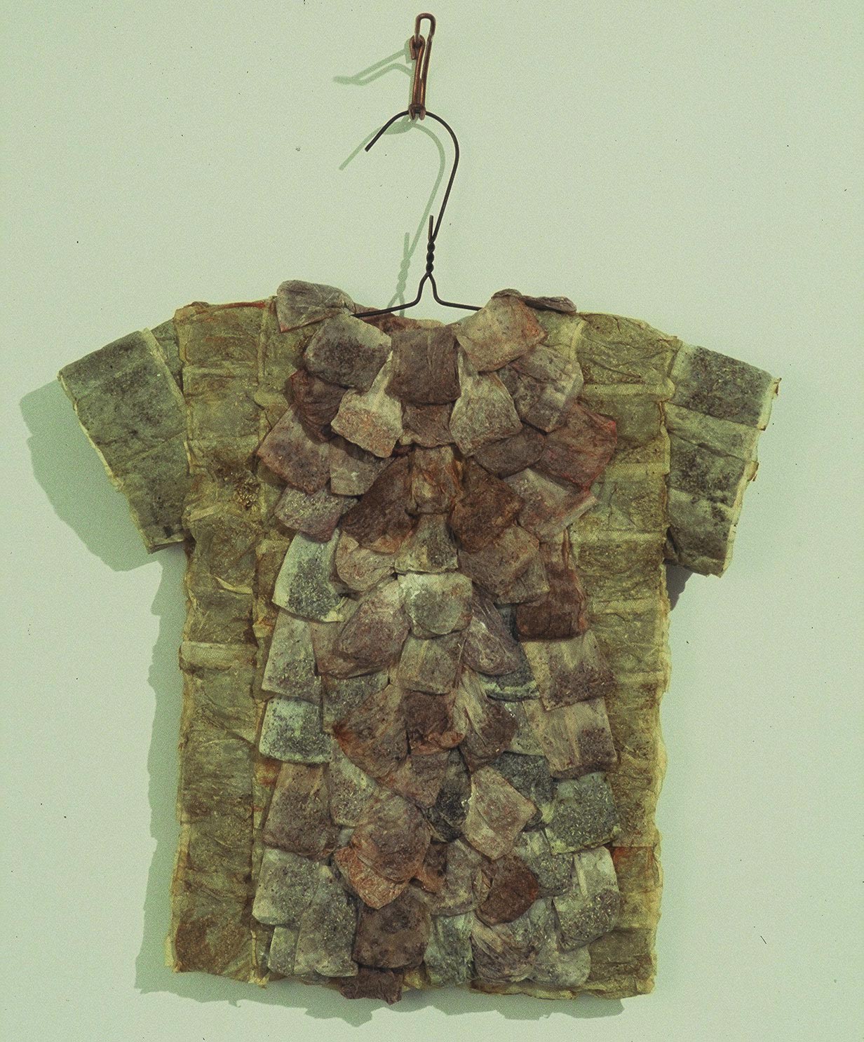 Vêtements réalisés à partir de sachets usagés de thé et de tisane. Premier projet initiant la collecte de matériaux du quotidien auprès de mon entourage. Œuvres diffusées principalement en Europe : France, Suisse, Allemagne. Toutes les oeuvres de cet ensemble ont été acquises dans des collections publiques ou privées.
